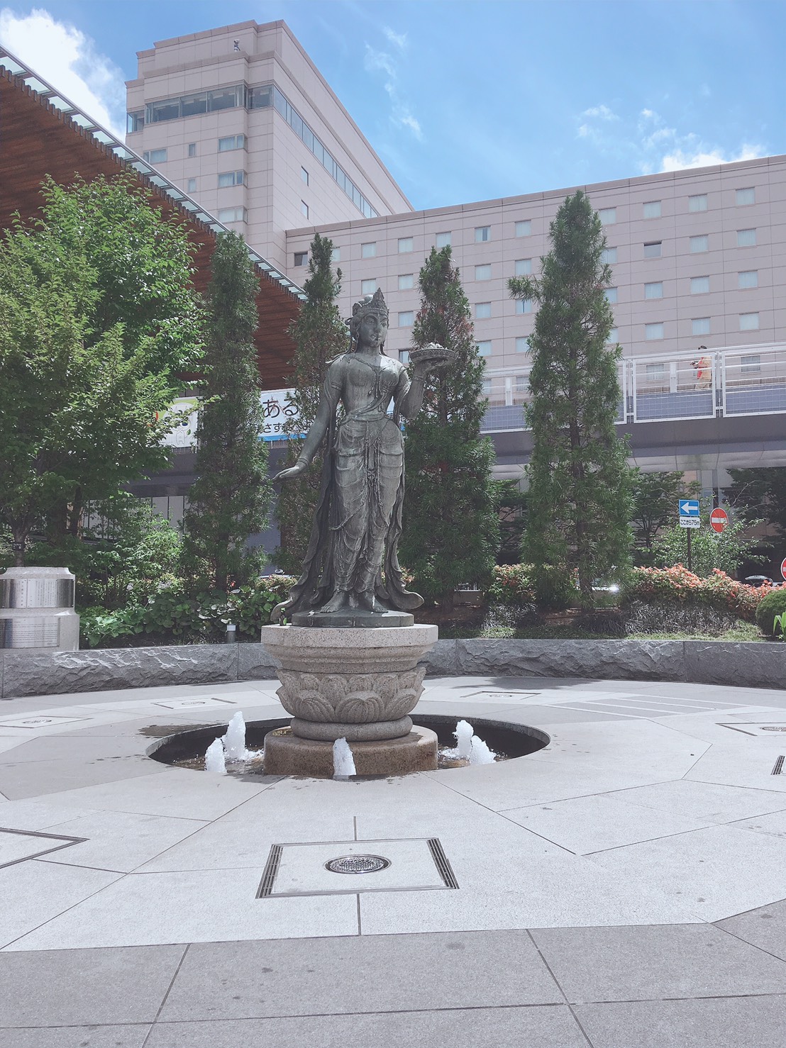 長野駅善光寺口を出てすぐの正面に、長野駅のシンボルの如是姫像が立っています。