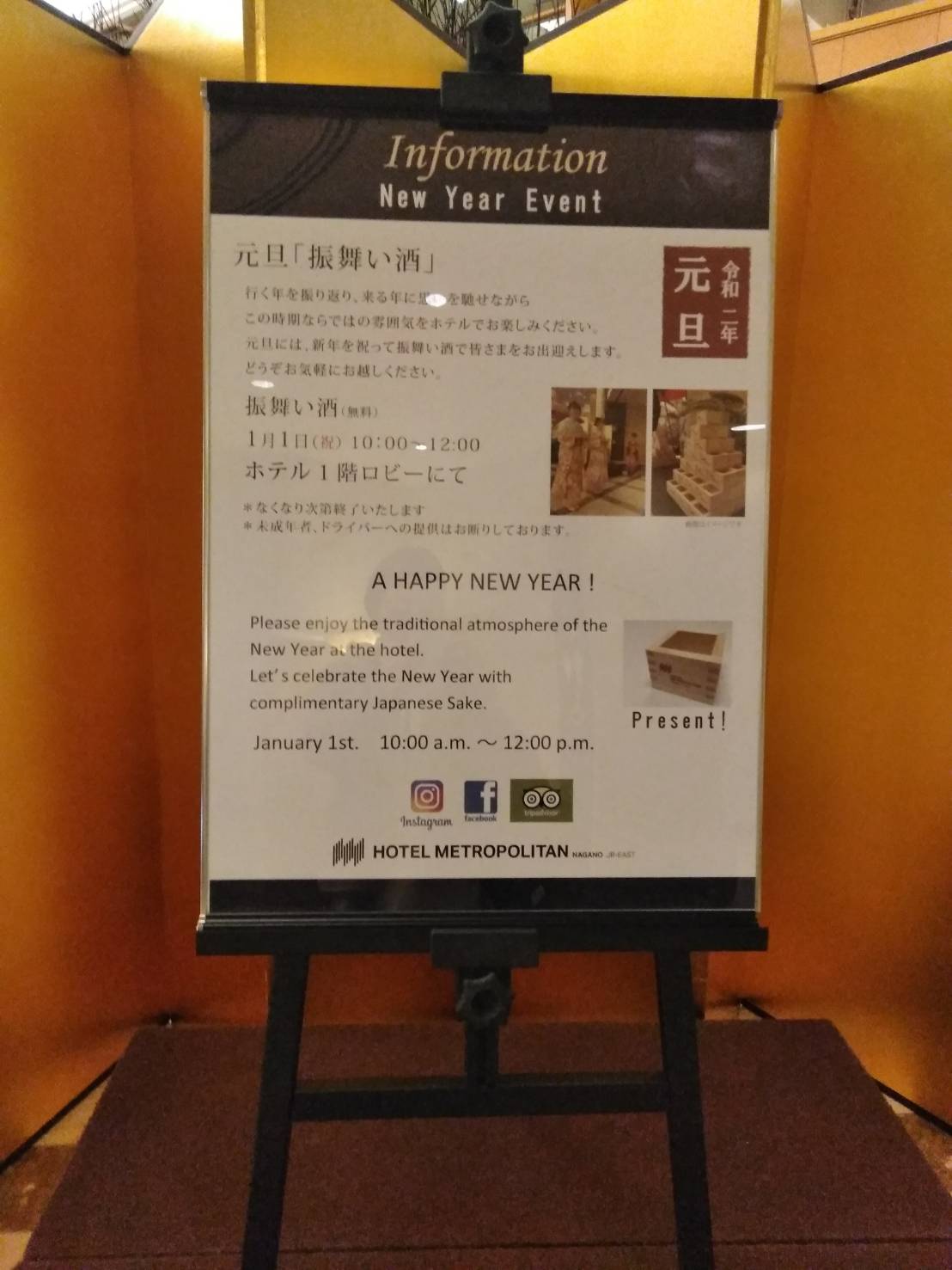 明日の元旦10時より、「ホテルメトロポリタン長野」のロビーにて、振る舞い酒があります。